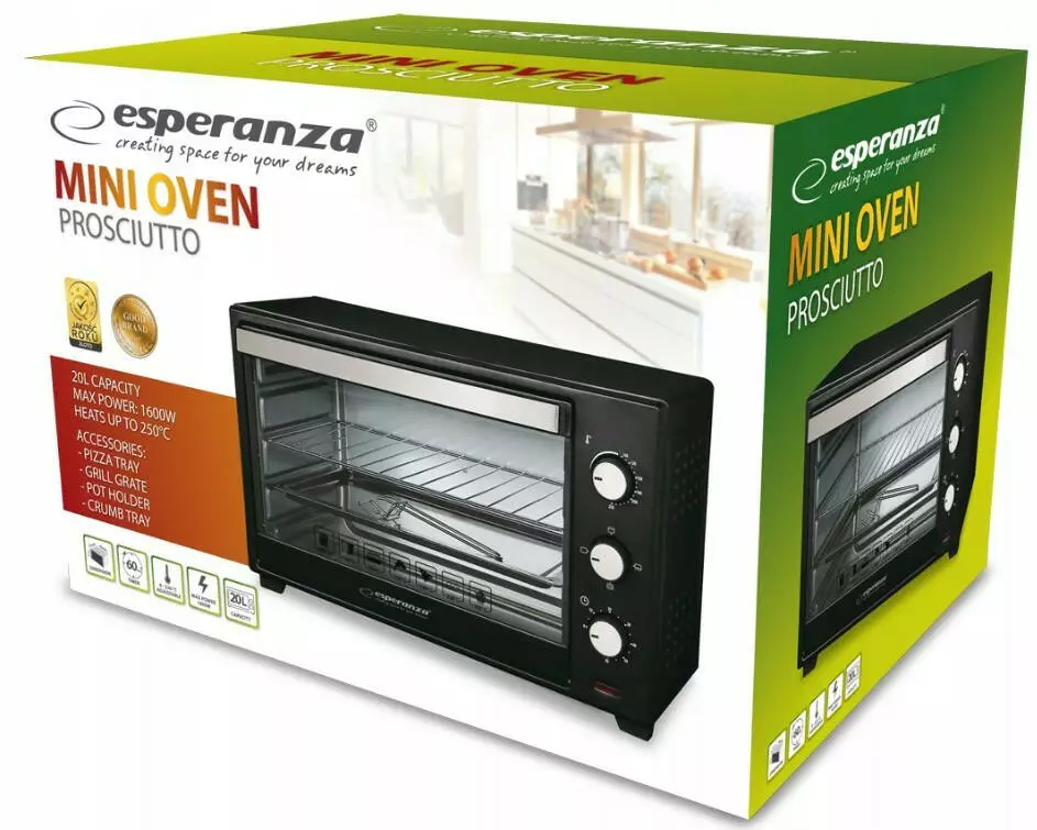 • Мини-печь Esperanza PROSCIUTTO поможет вам легко приготовить вкусную пиццу, запеканку, картофель фри или запечь мясо или рыбу.
