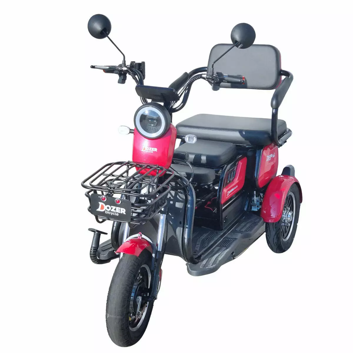 Електротрицикл DOZER Model 4E — пасажирський транспорт для комфортного перевезення у міських і приміських умовах. Конструкція поєднує стійкість, маневреність та плавний хід завдяки гідравлічній системі амортизації. Світлодіодне освітлення, стоп-сигнал і звуковий сигнал підвищують рівень безпеки. Акумулятор забезпечує тривалу роботу без частих підзарядок, що робить модель практичною для щоденного використання.