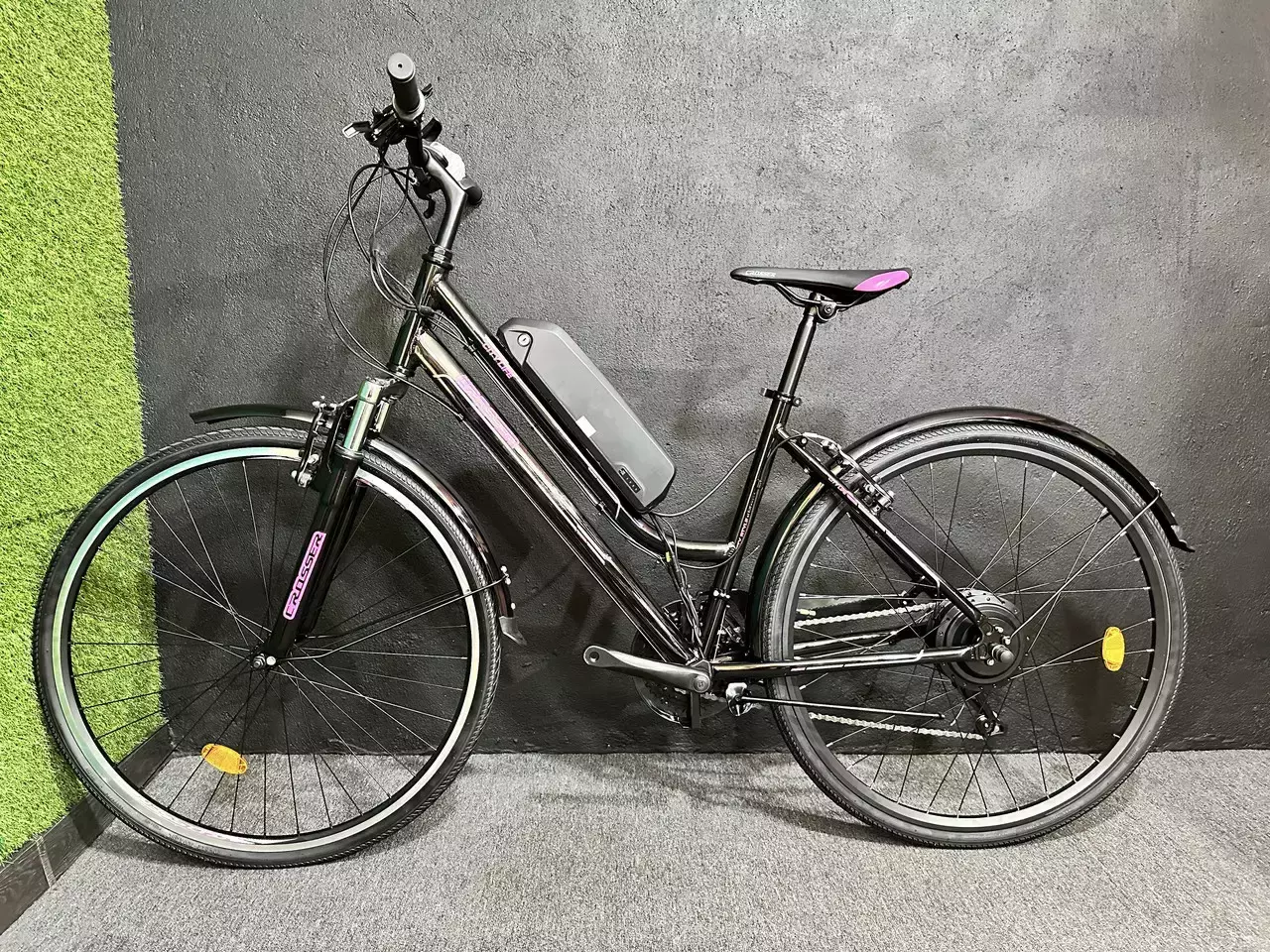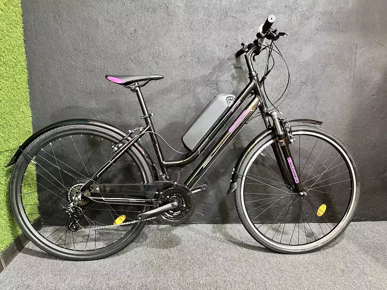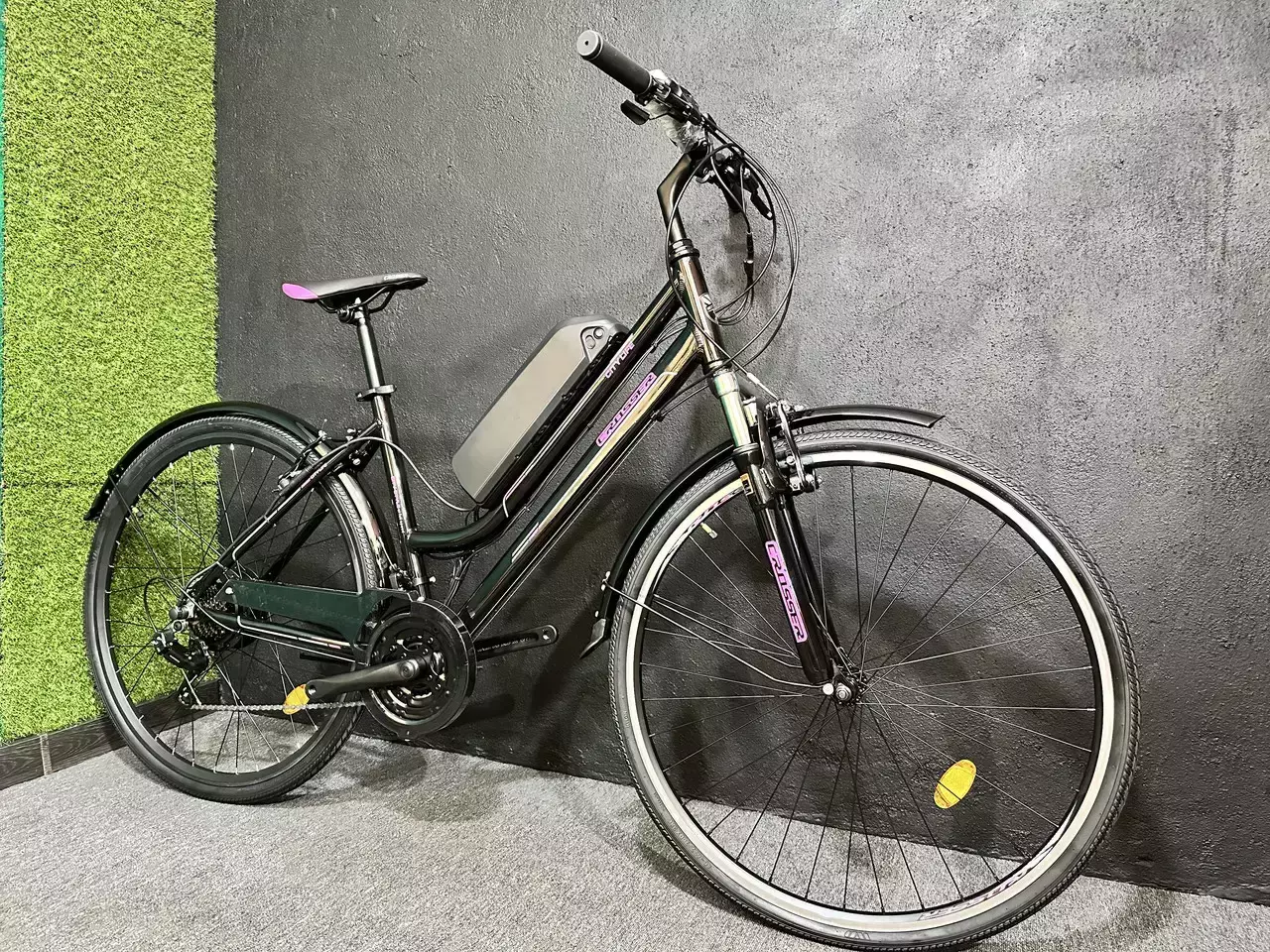 Електричний велосипед на алюмінієвій рамі з 28 колесами на задньому електроприводі. Потужність мотор-колеса 500W. Батарея міцно і надійно кріпиться до рами, блокується за допомогою ключа. В батарею інтегровано контролер, це зменшує кількість проводів і додаткових кріплень, боксів, сумок і т.і. Наружна частина корпусу контролера виготовлена ​​з алюмінію, що дає максимальне охолодження. Набір і весь велосипед виглядає гармонійно, збито.