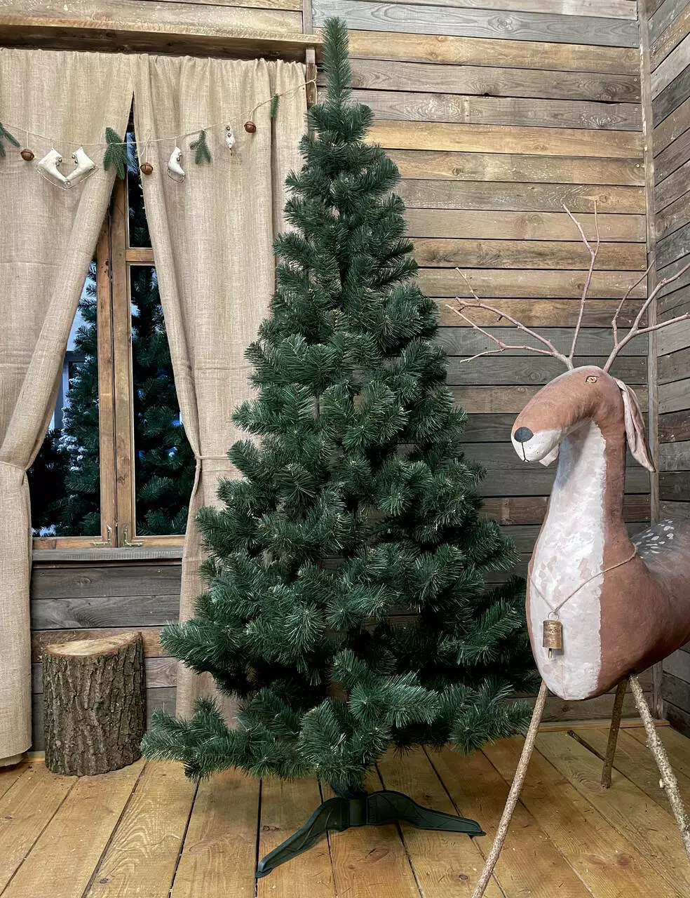 Искусственная новогодняя елка обыкновенная – отличный и не дорогой вариант для празднования Рождества и Нового года. Изготовлена из качественной ПВХ пленки, имеет естественный зеленый цвет веточек. Елка состоит из двух частей. Ее легко установить с помощью стойкой пластиковой подставки. Высота елки с подставкой – 200 см.