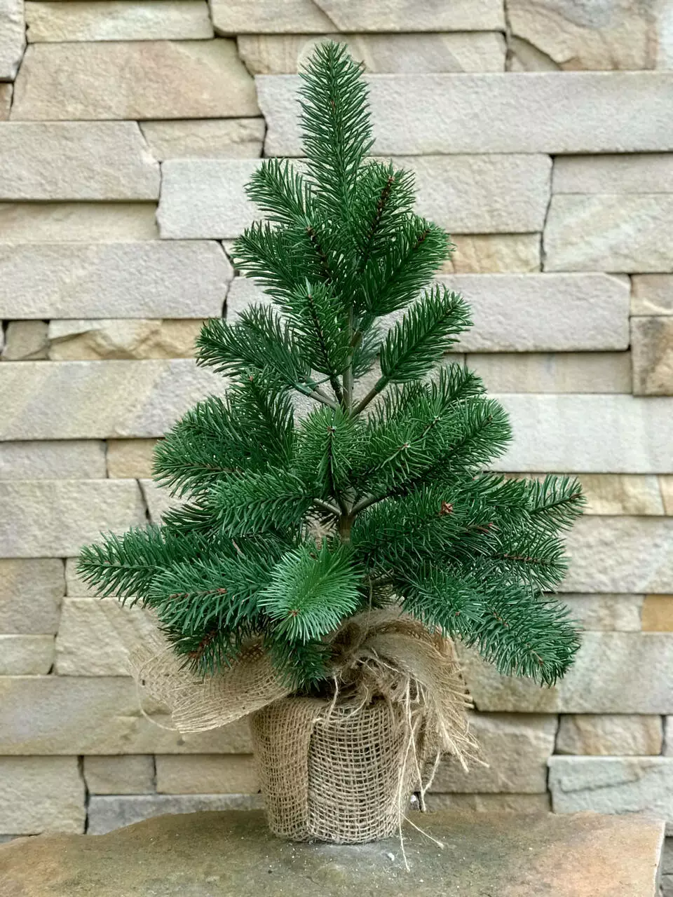 живой ёлки. Установлена в горшочек, украшенный мешковиной, с