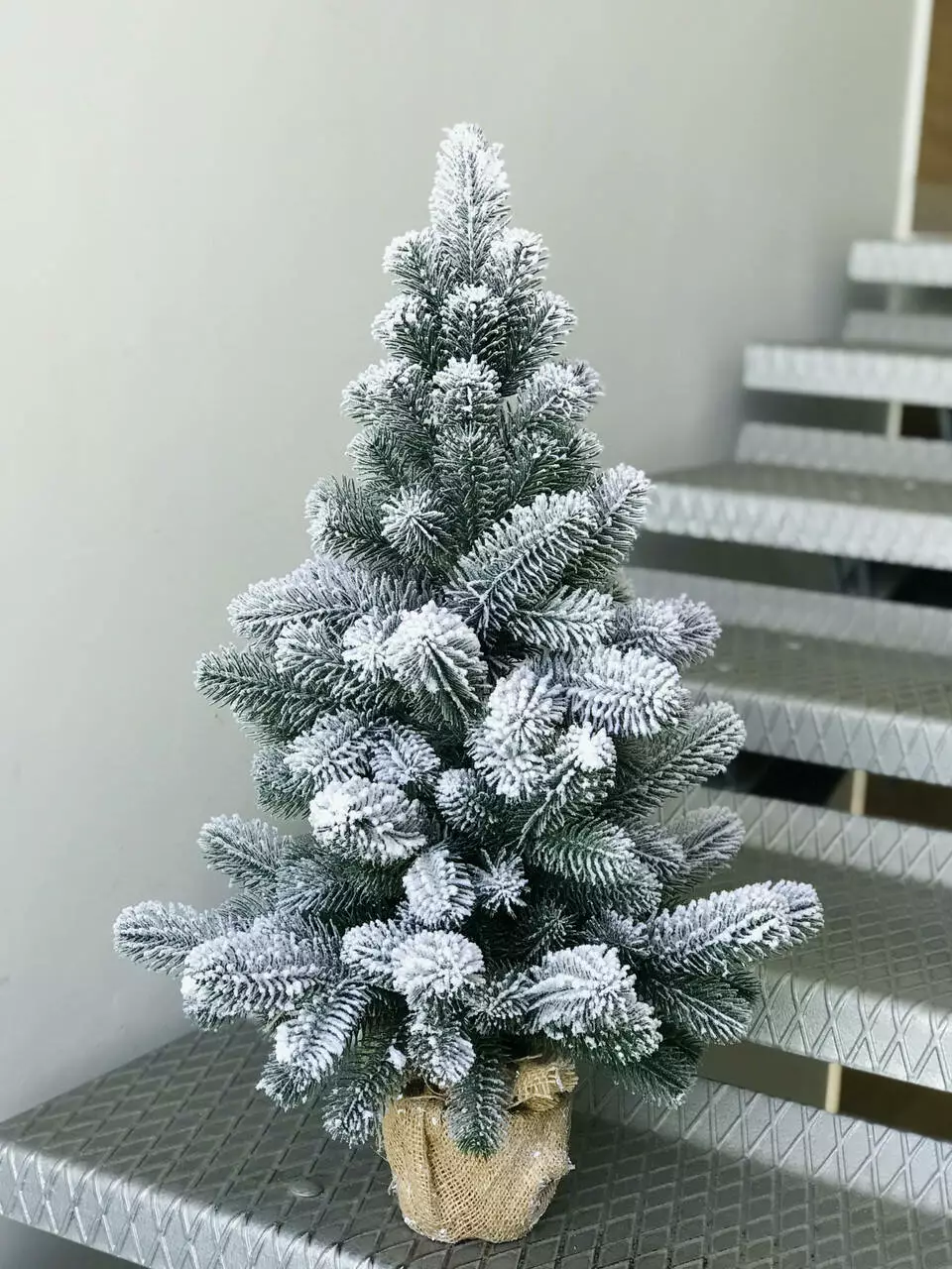 Компактная искусственная литая ёлочка выглядит нарядно даже без дополнительных украшений. Все иголочки - литые, точная 3D имитация хвои живой ёлки. Установлена в горшочек, украшенный мешковиной, с утяжелителем внутри - для защиты от опрокидывания. Объемное густое напыление на ёлочке, реалистично имитирует снег, только что упавший на ветки пушистыми хлопьями. Материалом распыления является натуральный хлопок, он экологичен и не имеет запаха, безопасен для детей и взрослых.