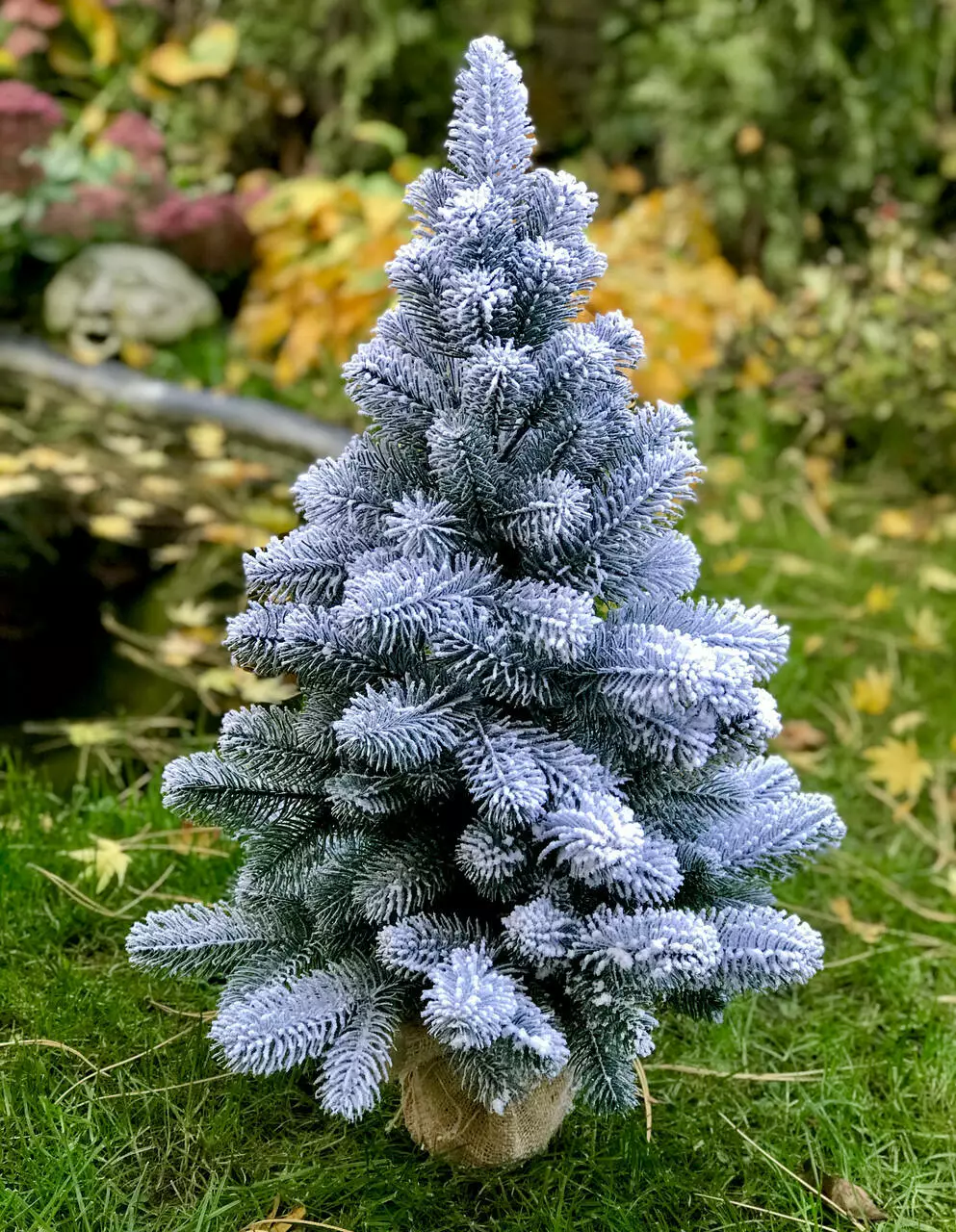 Ёлочка литая Premium в мешковине 70 см заснеженная