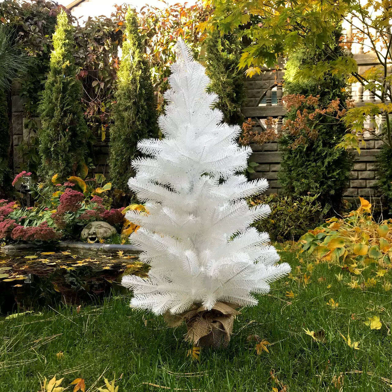 Компактная искусственная литая ёлочка выглядит нарядно даже без дополнительных украшений. Литые иголочки, точная 3-D версия хвои живой ёлки. Установлена в горшочек, украшенный мешковиной, с утяжелителем внутри - для защиты от опрокидывания.