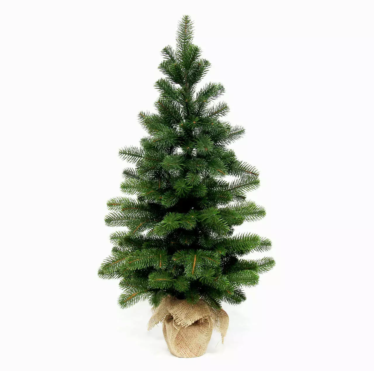 живой ёлки. Установлена в горшочек, украшенный мешковиной, с
