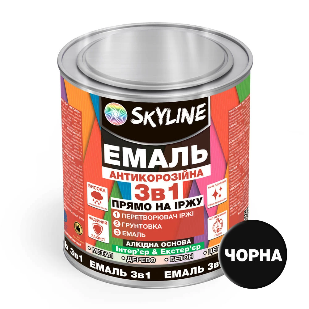 Эмаль алкидная 3 в 1 по ржавчине антикоррозионная «Skyline» Черный 0.9 кг