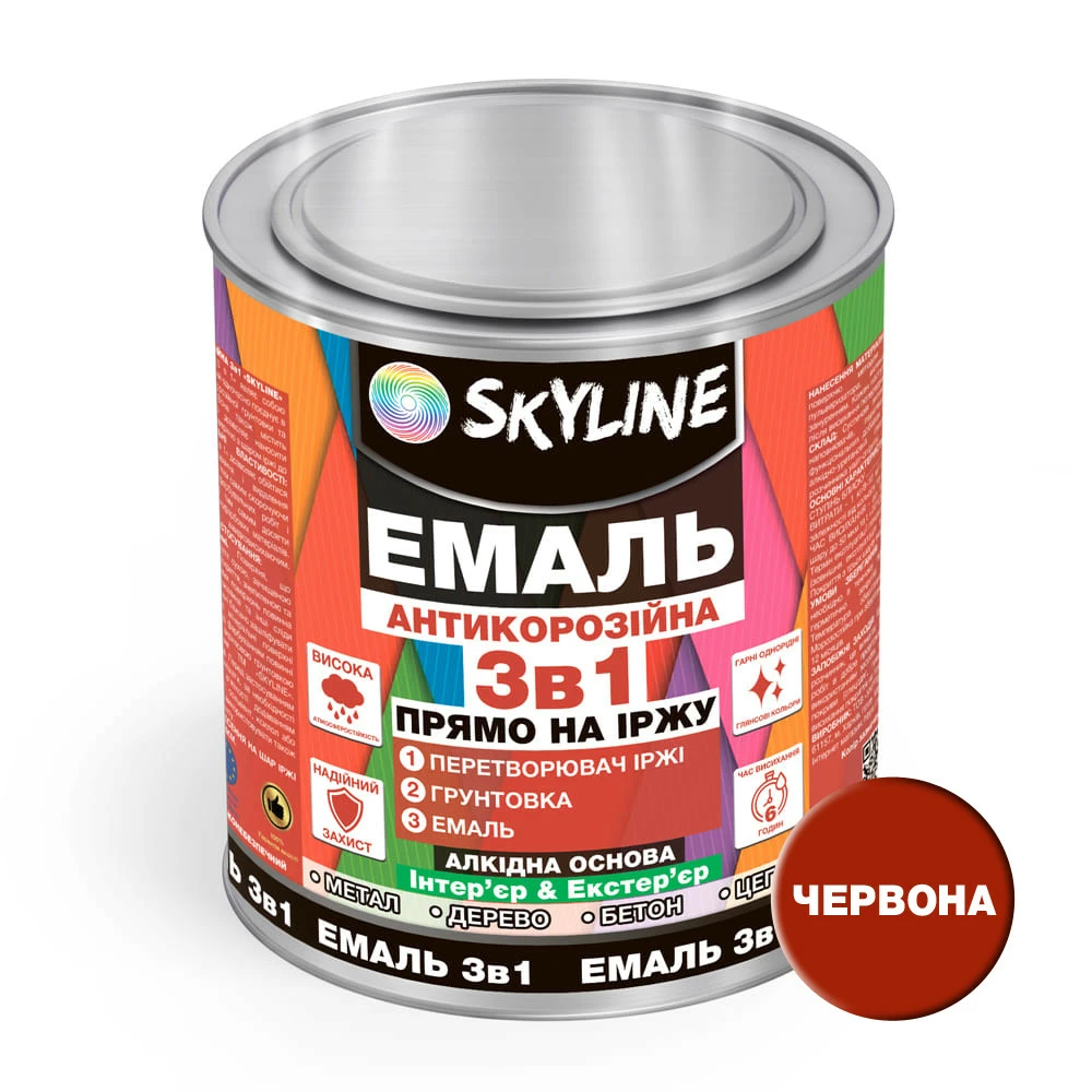 Эмаль алкидная 3 в 1 по ржавчине антикоррозионная «Skyline» Красный 0.9 кг