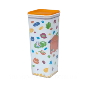 Емкость для сыпучих продуктов "Фикс" 2,25л., Артикул 169060,  параметры изделия : линейные размеры ,мм : 110 х 110 х 280, объем - 2,25 л;  кол-во в упаковке: 25 шт.    Цвета  в ассортименте :_пр./бірюзова,_пр./кремова,_пр./оливкова,_пр./світло-оранжева,_пр./темно-рожева.