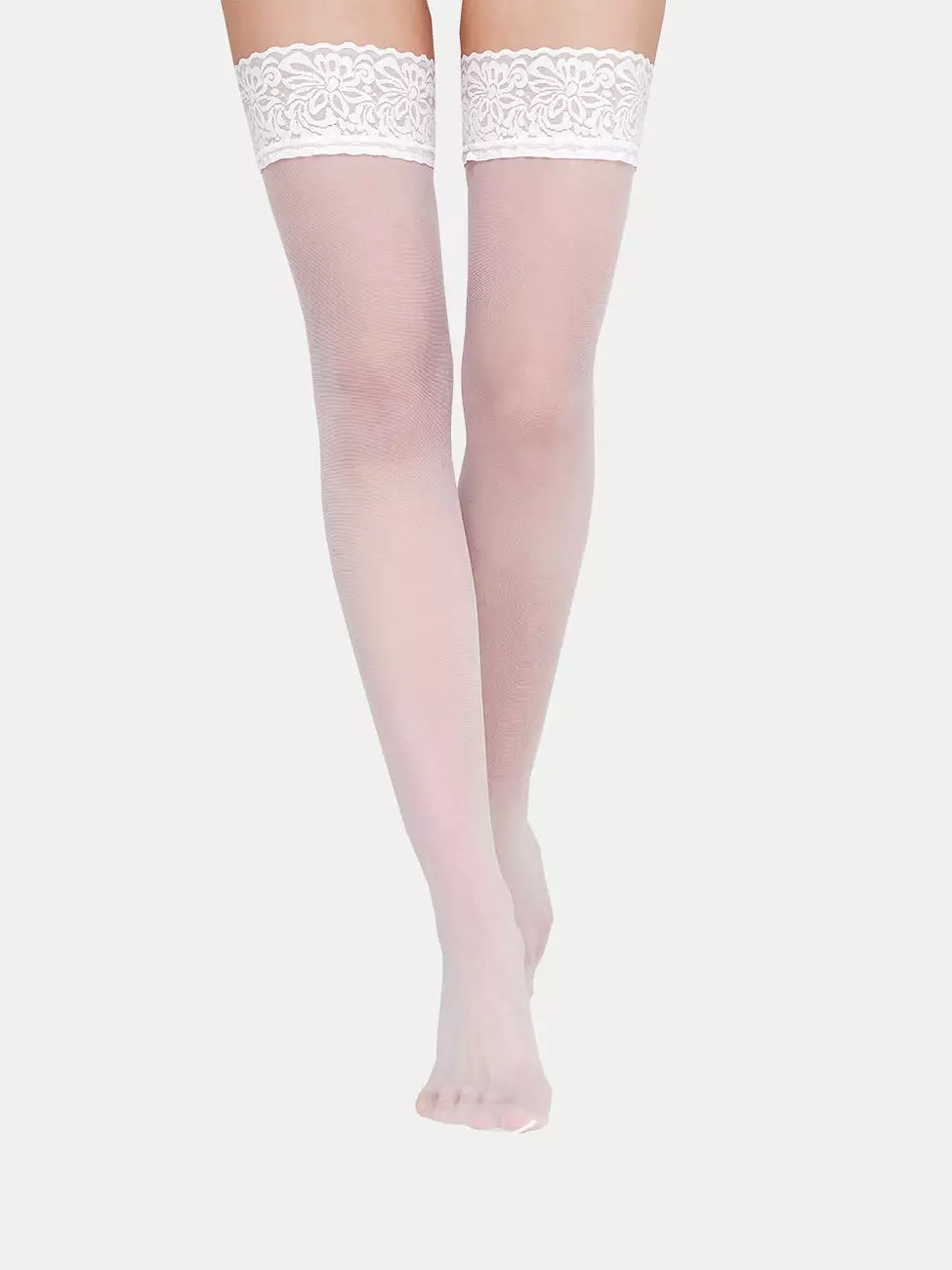 Шовковисті напівматові панчохи з мереживом Giulia EMOTION 40 den bianco, 3/4(M/L)
