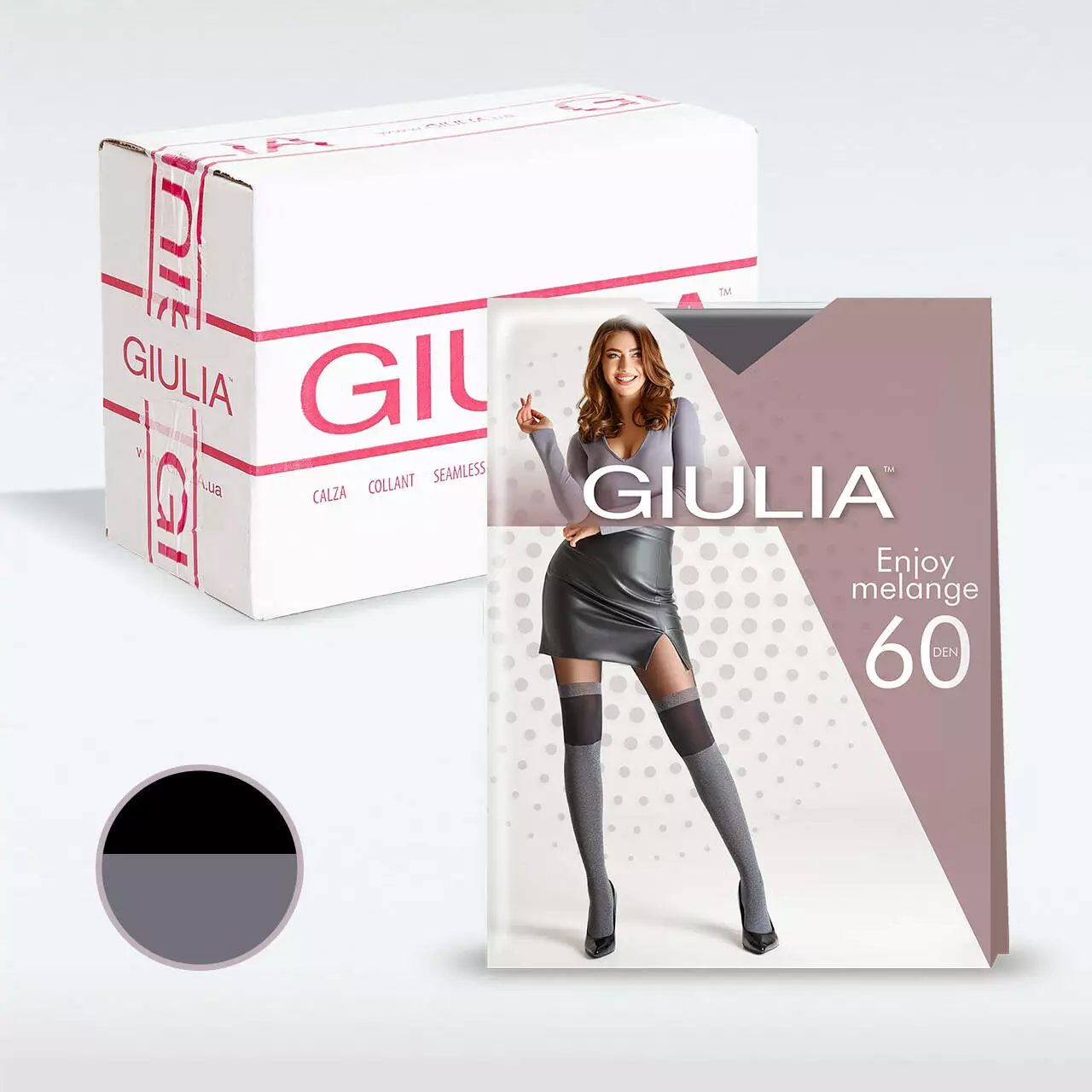 Жіночі колготки 60 DEN з ефектом «меланж» та імітацією панчох — стильний вибір для демісезонних образів. Модель без шортиків легко поєднується з одягом різної довжини. Середня посадка, пласкі шви та широкий еластичний пояс забезпечують комфорт і надійну фіксацію протягом дня.