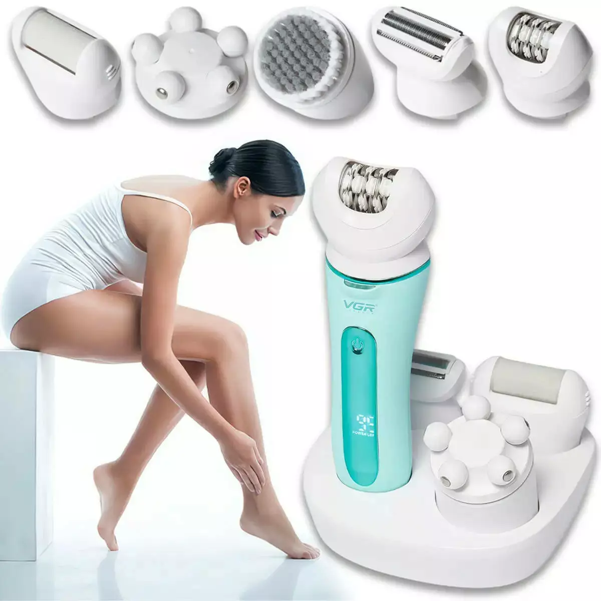 5 змінних насадок: епілятор, бритва, пемза для ніг, масажер та