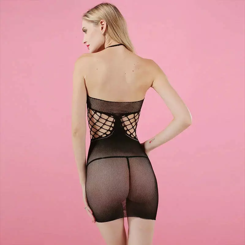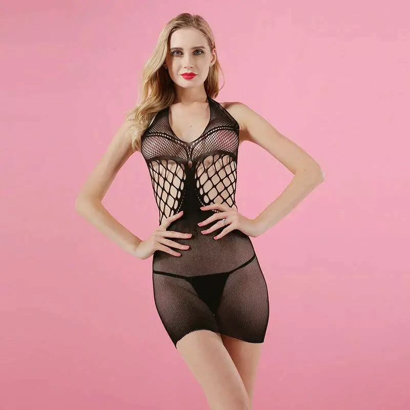 Сексуальний жіночий бодістокінг виконаний у вигляді міні-сукні з