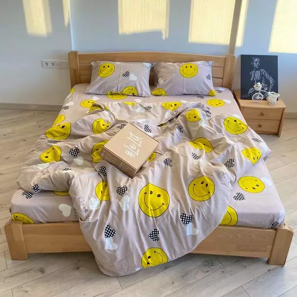 Евро постельное белье LeLIT 0827 бежевое с принтом "Смайл"