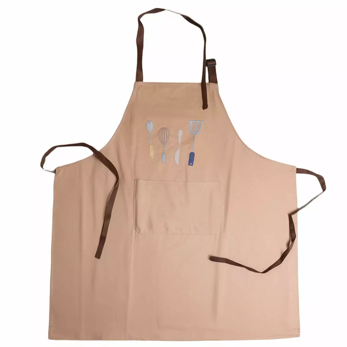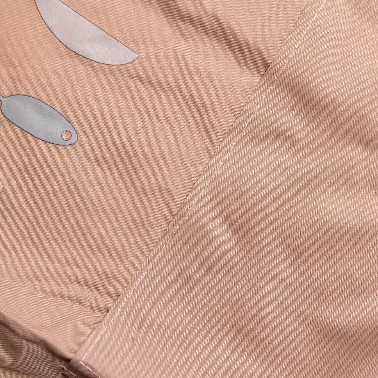 Матеріал — поліестер із водонепроникними властивостями, що зменшує проникнення вологи та спрощує догляд. Тканина зберігає форму, стійка до зношування та підходить для багаторазового прання. Нагрудна частина доповнена принтом, а спереду розташована містка кишеня для зберігання кухонного приладдя, рушника або дрібних аксесуарів.