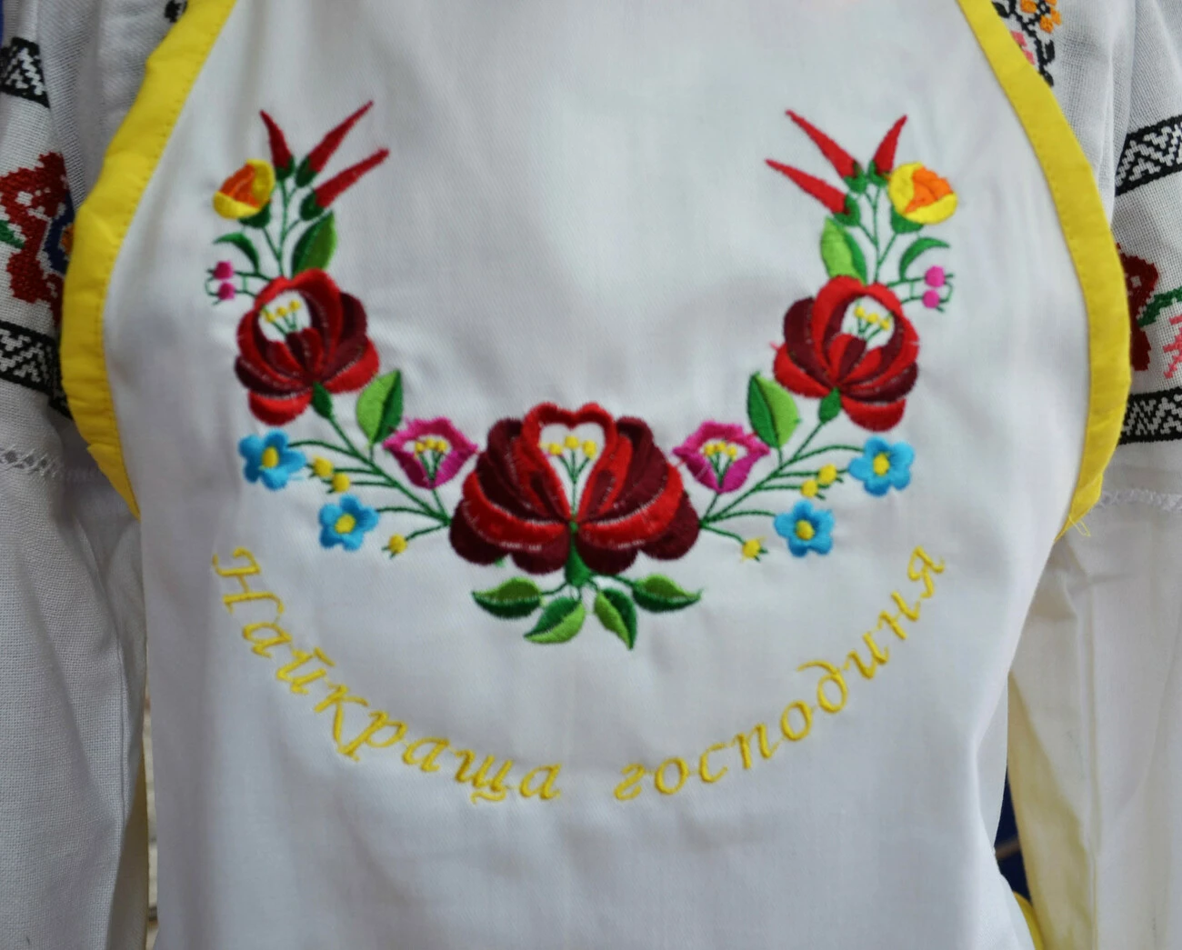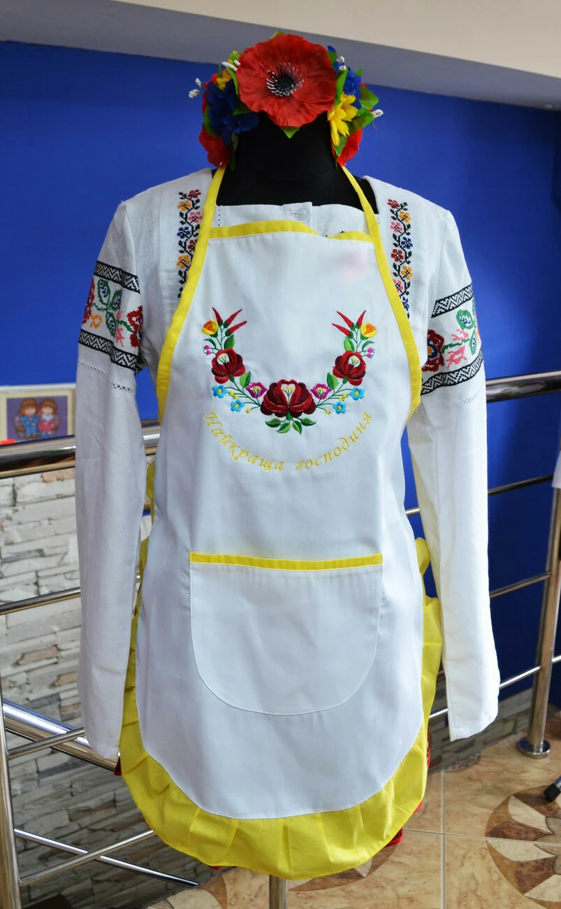 Яскраво-жовтий фартух з оригінальним вишитим надписом «Найкраща Господиня» від гуртівні Leosouvenir буде чудовим подарунком для Вас і Ваших близьких.