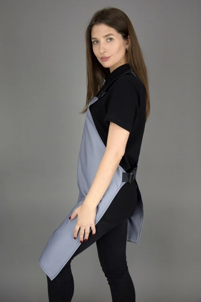 Фартук форма "ассиметрия ",с нагрудником .застёжки с пластиковым регулятором ,с помощью которого можно регулировать длину фартука.