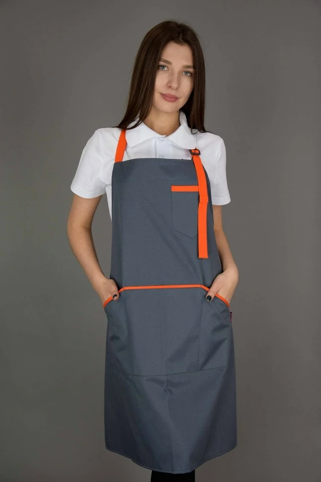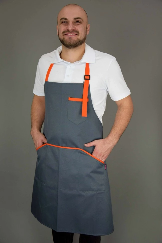 Фартук поварской / официантский с нагрудником Lux-Form Серый с оранжевым 103189