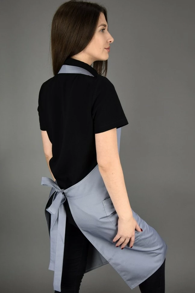 Фартук форма "трапеция",с нагрудником .Имеет шейный хлястик застёжка на карабинах ,с помощью которого можно регулировать длину фартука.