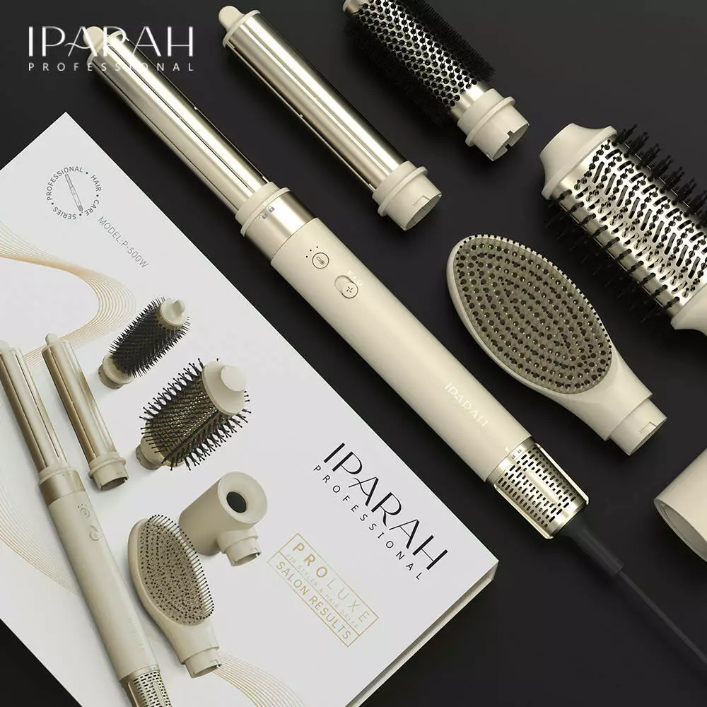 Багатофункціональний Hot Air Styler IPARAH P‑500 - це професійний прилад 6 в 1 для сушіння, укладання, завивки та випрямлення волосся. Оснащений високоефективним безщітковим мотором BLDC з високою швидкістю повітряного потоку, що забезпечує потужне, але дбайливе сушіння без пошкоджень і перегріву. Пристрій поєднує функції фена, браш-щітки, автоматичних стрижнів для завивки, круглої і овальної щіток для об'єму, а також щітки-випрямляча для гладкого і доглянутого волосся. Регульовані режими швидкості обдування та температури дозволяють підібрати оптимальні параметри для будь-якого типу волосся, а технологія негативної іонізації знижує статичну електрику, надаючи зачісці блиску та м'якості. Ергономічний дизайн і насадки, що легко змінюються, роблять цей стайлер ідеальним як для повсякденного використання будинку, так і для професійного застосування в салоні.
