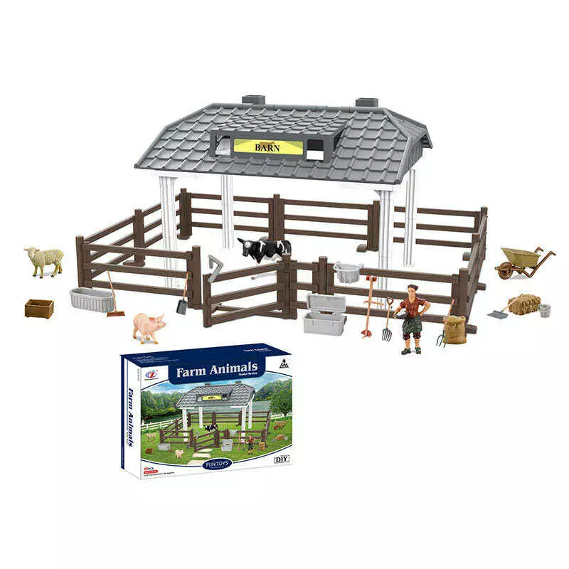Ферма Q 9899 ZJ94 (12) 45 елементів, хлів з загорожею, фігурка фермера, свійські тварини, тачка, аксесуари, в коробці