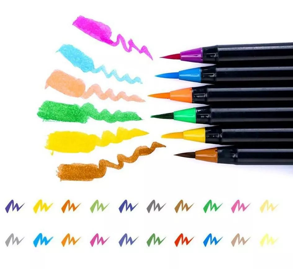 из 20 оттенков) + кисточка с пустым резервуаром для воды. Чернила в