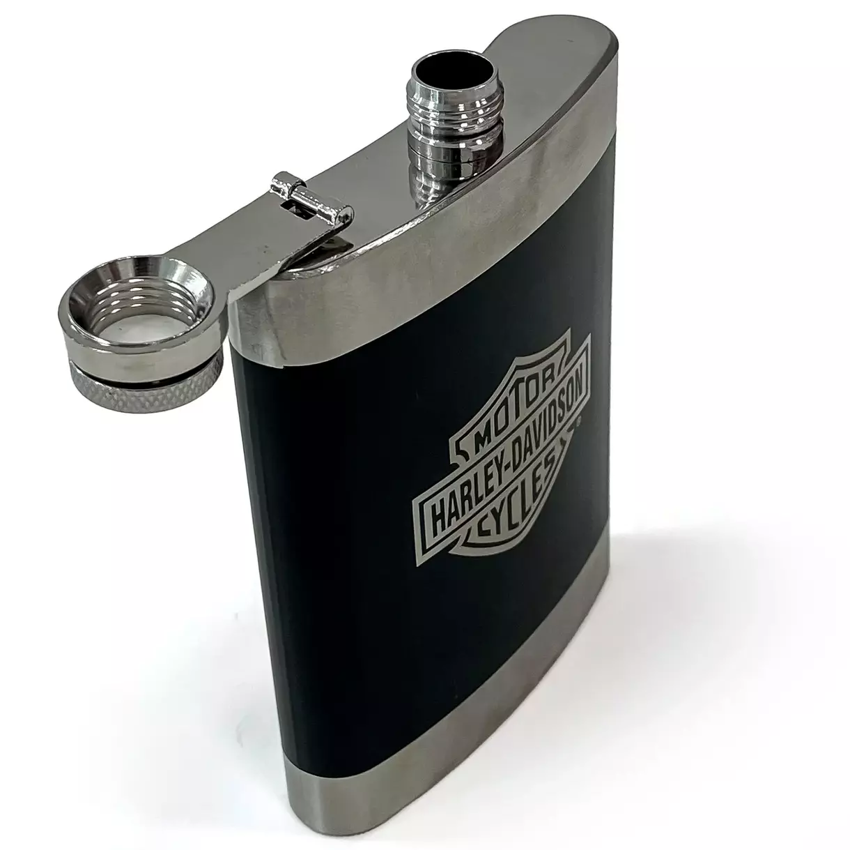 Стильная металлическая фляга объёмом 8 унций (240 мл) с легендарным логотипом Harley-Davidson Motor Cycles — это идеальный аксессуар для байкеров, путешественников и ценителей свободы. Изготовлена из прочной нержавеющей стали, покрыта матово-чёрной эмалью с контрастной гравировкой.