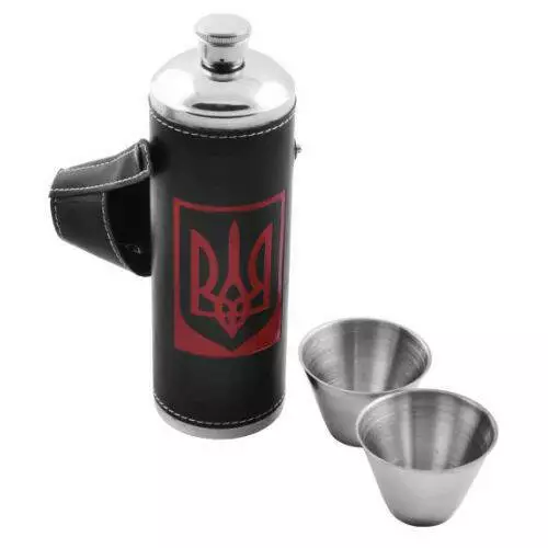 Фляга-термос из нержавеющей стали в кожаном чехле Украина + рюмки YT10