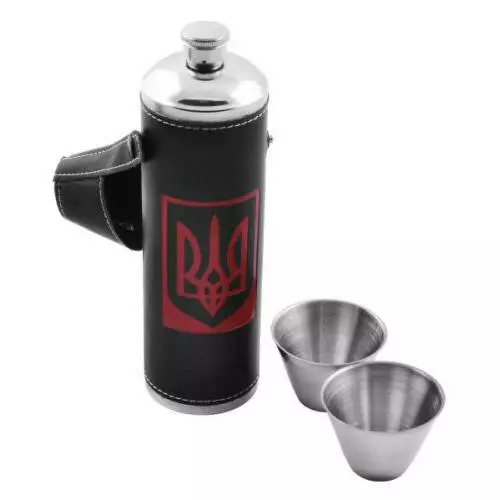 Фляга-термос из нержавеющей стали в кожаном чехле Украина + рюмки