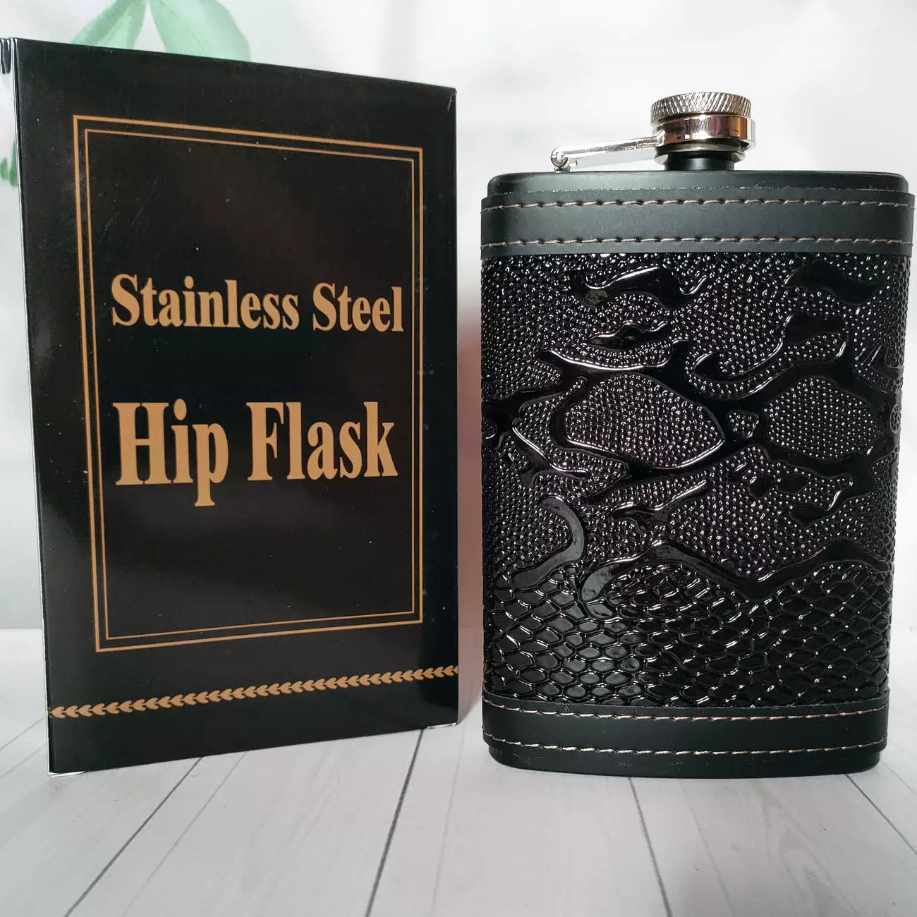 Фляжка из нержавеющей стали с чехлом под змеиную кожу