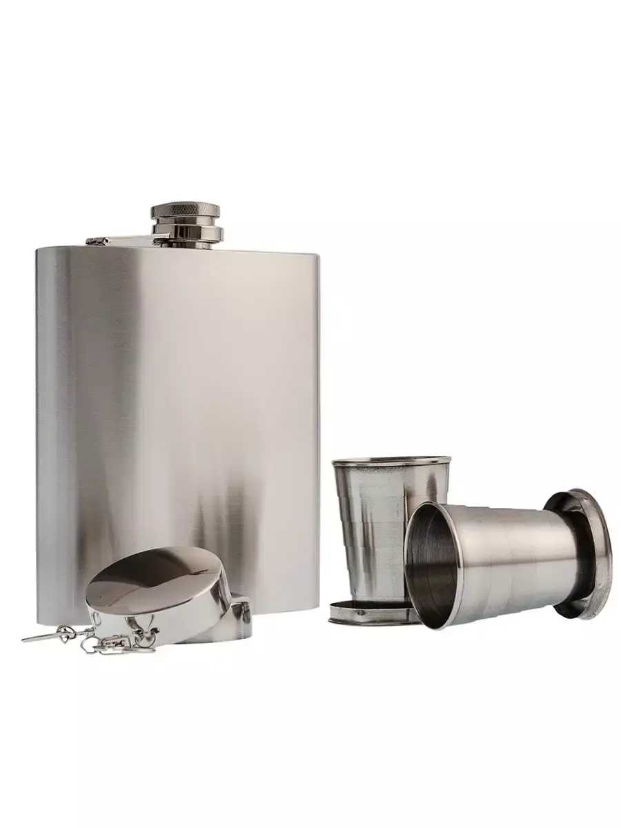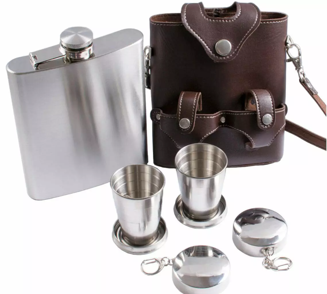 Набор в кожаном чехле Фляга, раздвижные стаканы