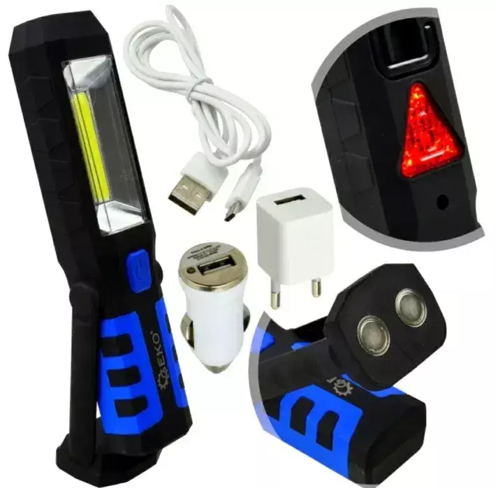 Ліхтарик для майстерні / автомобіля оснащений Li-ion акумулятором ємністю 2800 мАг. Завдяки використанню світлодіодів COB нового покоління лампа має тривалий термін служби (100 000 годин) і менше енергоспоживання, ніж лампи з традиційними світлодіодами. Крім того, світлодіодна стрічка (COB LED) дає набагато більше світла, ніж звичайні світлодіодні лампи.