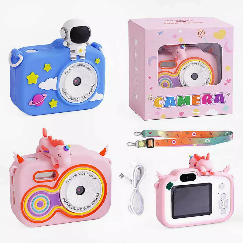 Фотоапарат С 65317 (50) 2 види, фронтальна камера, звук, фото, відео, 3 гри, роз’єм для SD карти, дріт для зарядки, силіконовий чохол, ремінець, інстр