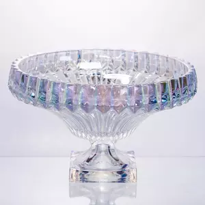 Фруктовниця із товстого скла на квадратній ніжці поєднує практичність та стійкість, забезпечуючи зручну подачу фруктів, десертів або кондитерських виробів. Висота виробу становить 18.5 см, а діаметр чаші — 29 см, що дає змогу розмістити велику кількість різноманітних частувань. Висота ніжки 7 см піднімає композицію над поверхнею столу, надаючи сервіруванню виразного акценту.