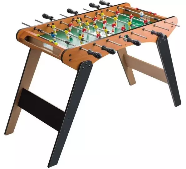 З підлоговим дерев'яним футболом 1075+1 Ви зможете влаштовувати захоплюючі матчі в якому спортивний азарт та жага до перемоги опанує всіх учасників! Стіл із вбудованими ніжками виготовлений із високоміцного ДСП та відрізняється чудово опрацьованим дизайном. Матове темно-зелене ігрове поле розкреслено під лінію розлучення м'яча, штрафну зону та воротарську площу з пластиковими воротами. У футбольному матчі беруть участь дві сильні команди, які розділилися за кольорами: червоні та жовті. Кожна команда складається із 11 гравців. Завдання гравців: за допомогою телескопічних рукояток, на яких розміщено певну кількість фігурок, спробувати обійти супротивника та забити м'яч у ворота. Осі напрямних виконані з металу, а знімні ручки-тримачі із пластику з антиковзним рельєфом. Високі борти ігрового столу запобігають вильоту м'яча за межі поля. Крім того, стіл оснащений рахунковим табло, де Ви зможете з легкістю фіксувати результат, не відволікаючись від ігрового процесу. Ця захоплююча спортивна гра гарантує не тільки веселе проведення часу, але й розвиває швидкість реакції, кмітливість, логічне мислення та точність рухів дитини. А за поганої погоди, яка скасовує прогулянки на вулиці, міні-футбол стане чудовим варіантом для захоплюючого та динамічного дозвілля! Особливості моделі: - каркас із високоякісного ДСП; - металеві штанги; - рахункове табло та 2 м'ячі. Комплектація: - Каркасні елементи; - ігрове поле; - 8 металевих штанг; - елементи кріплення з фігурками гравців; - 2 пластикові м'ячі; - 2 циферблати; - Пластикові ручки з антиковзким покриттям.