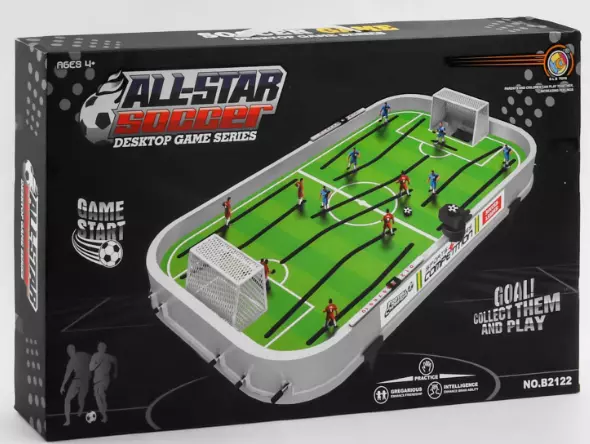 Ваше маля обожнює грати у футбол, але не завжди є можливість пограти на полі? Тоді здивуйте його високоякісним настільним футболом B2122! Адже ігрова модель є зменшеною копією реального футбольного поля, на якому відбуваються світові матчі. Дитина з легкістю зможе організувати прямо у себе в кімнаті неймовірно видовищну гру, в якій пристрасті та жага до перемоги будуть розпалюватися до межі. Правила гри дуже прості і нічим не відрізняються від звичайного футболу: необхідно забити якнайбільше м'ячів у ворота суперника, але при цьому не забувати про захист свого боку. На ігровому полі розташувалися дві сильні команди – червоні та сині. Кожна з команд налічує по 6 гравців, де кожен спортсмен на спині має свій персональний номерний знак. Керувати фігурками необхідно за допомогою спеціальних металевих штанг, встановлених з обох боків ігрового поля. У кожного гравця траєкторія руху різноманітна. Така особливість робить гру ще більш захоплюючою та допомагає розвивати уважність, швидкість реакції та прагнення до перемоги. Вирішальний точний удар по м'ячу і одна з команд може здобути заповітний кубок! особливості: - запускач м'яча; - металеві штанги; - 2 м'ячі; - Рахункове табло; - Стильний дизайн. Комплектація: - ігрове поле; - 12 гравців; - Ворота; - 2 м'ячі; - Рахункове табло; - запускач м'яча; - елементи кріплення. Розмір ігрового поля – 52х6х28,5 см.