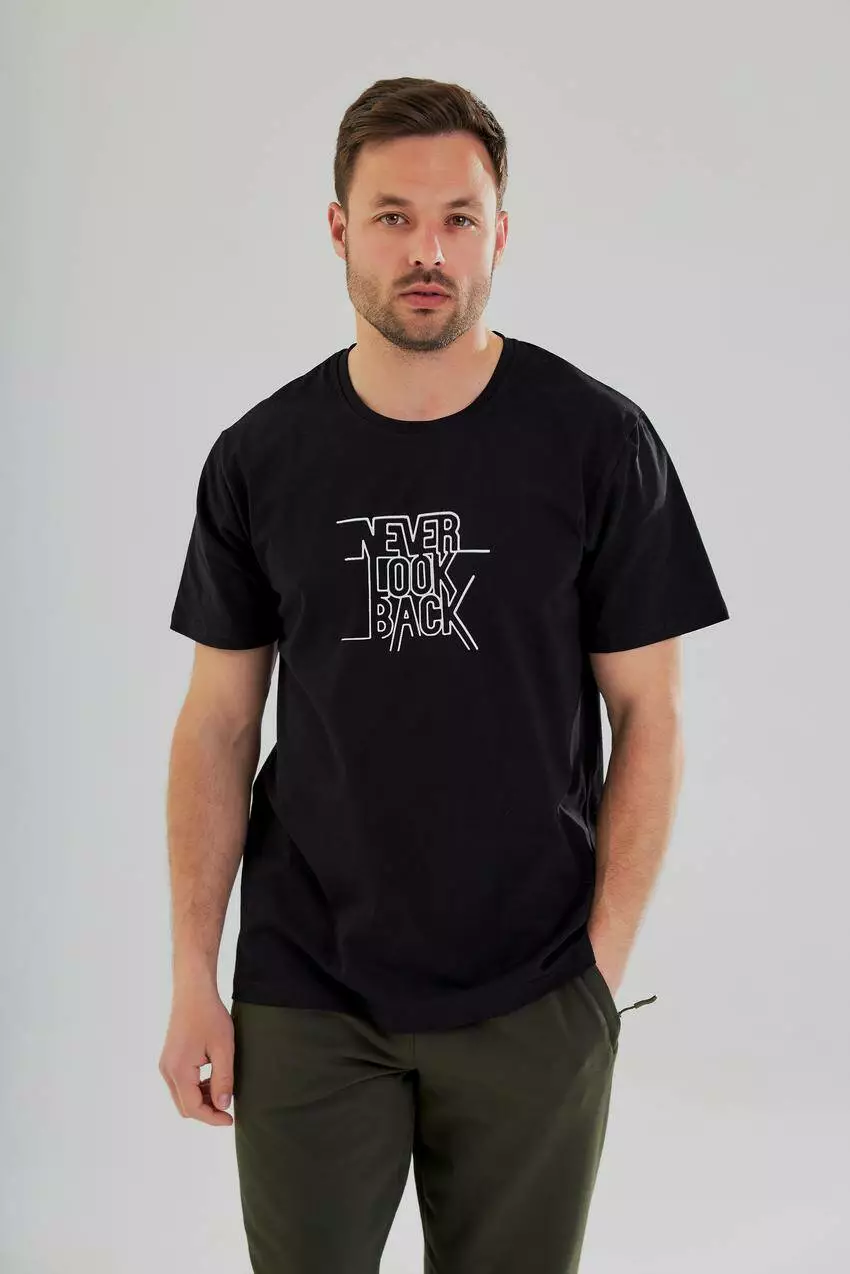Чоловіча базова футболка з принтом "Never Look Back" — стильна