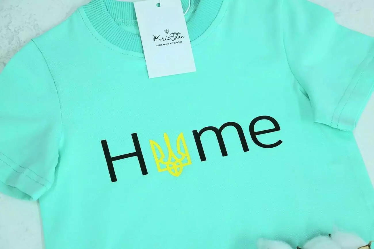 Футболка дитяча з принтом "Home" мінт 152, 158р