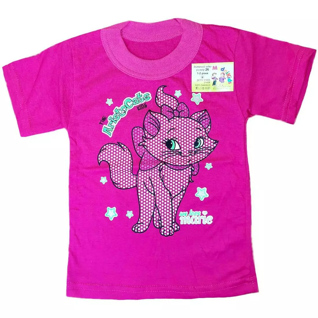 Футболка для девочки 1-2 года розовая хлопок