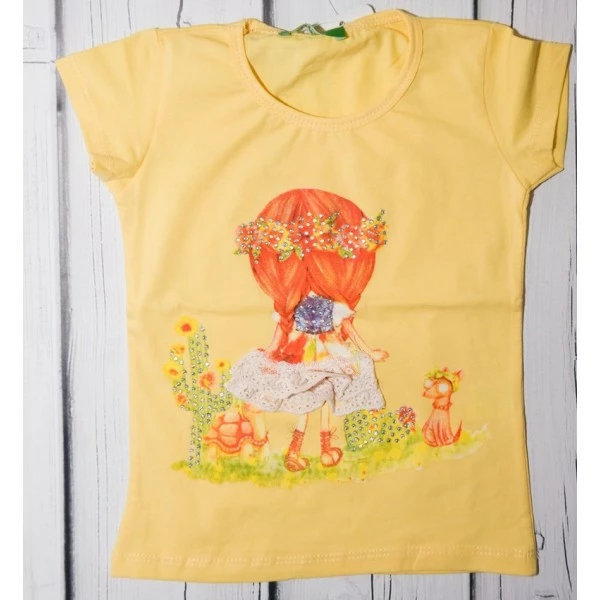 Летняя футболка для девочки с принтом от турецкого производителя - хороший выбор для прогулок. 90% хлопок; 10% эластан.
