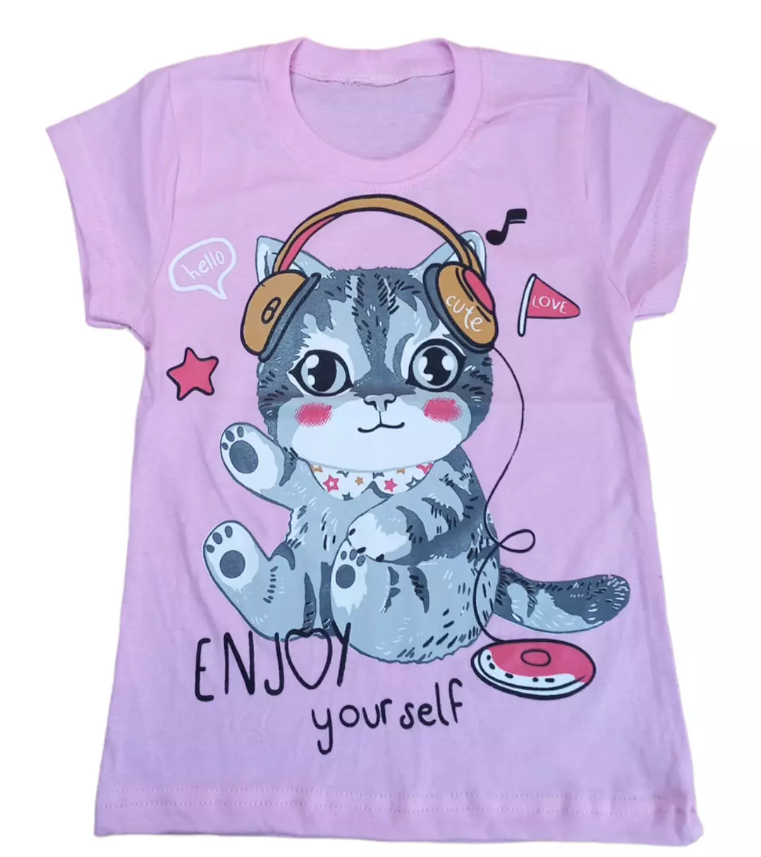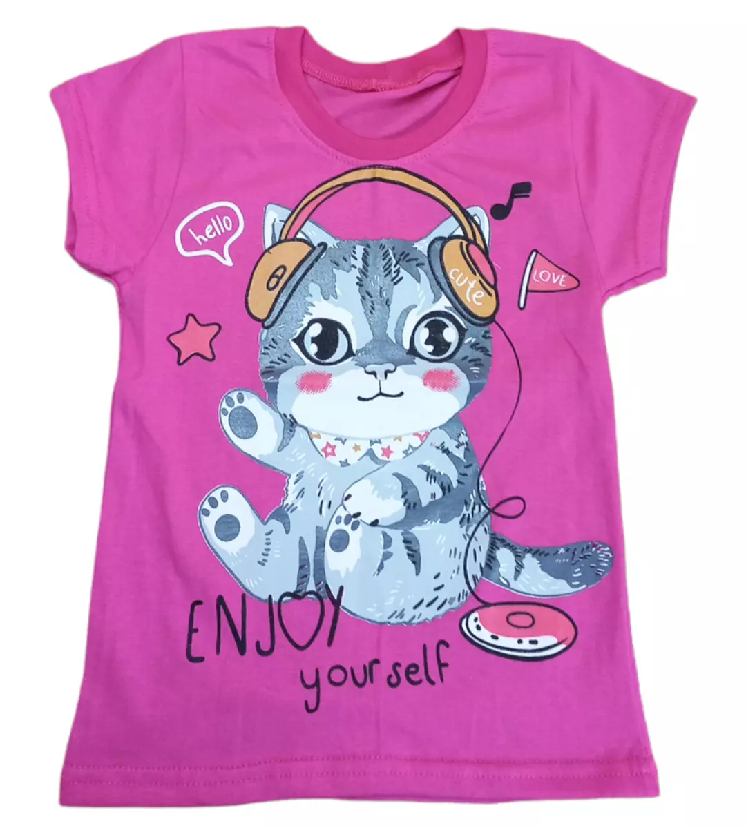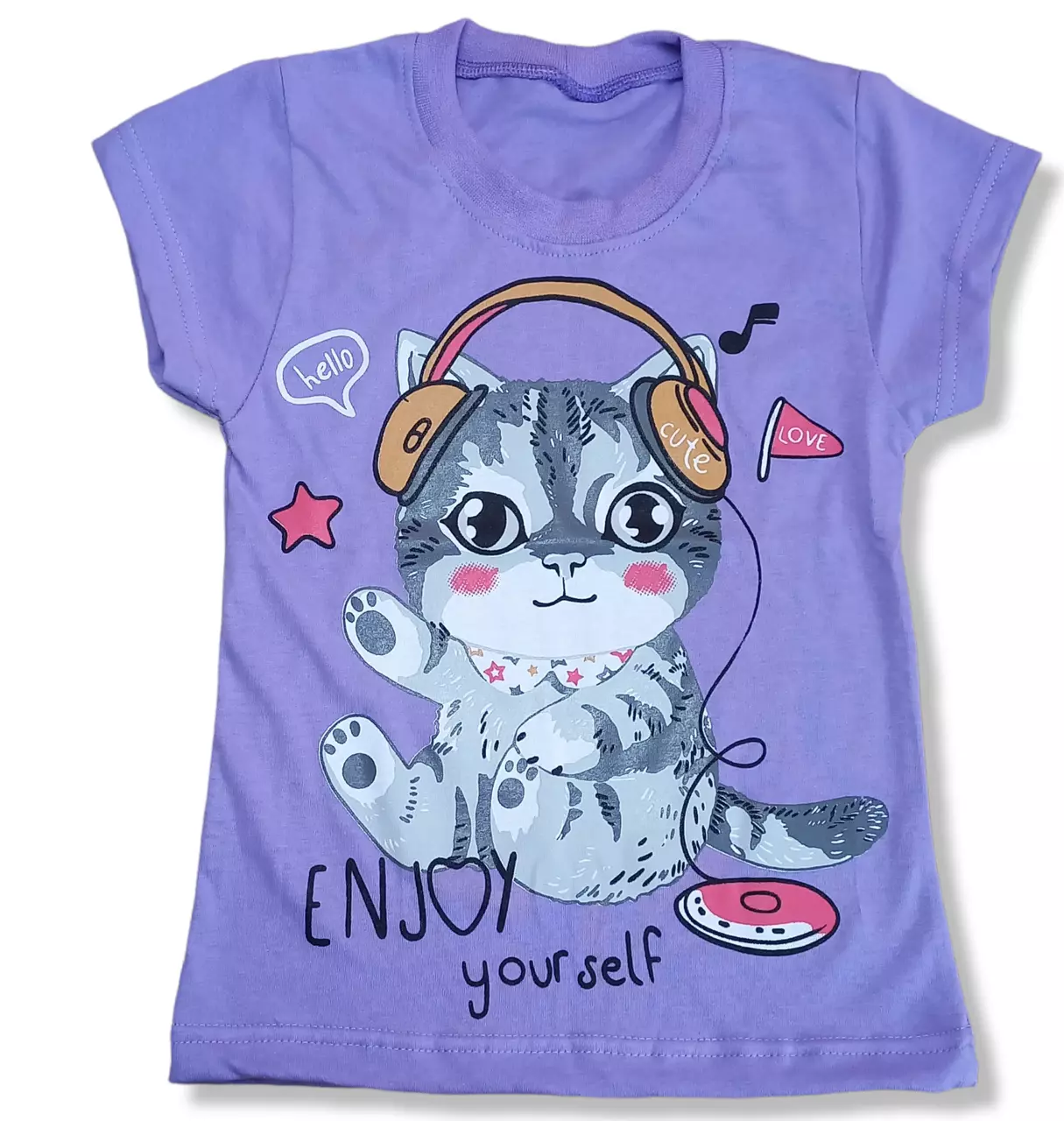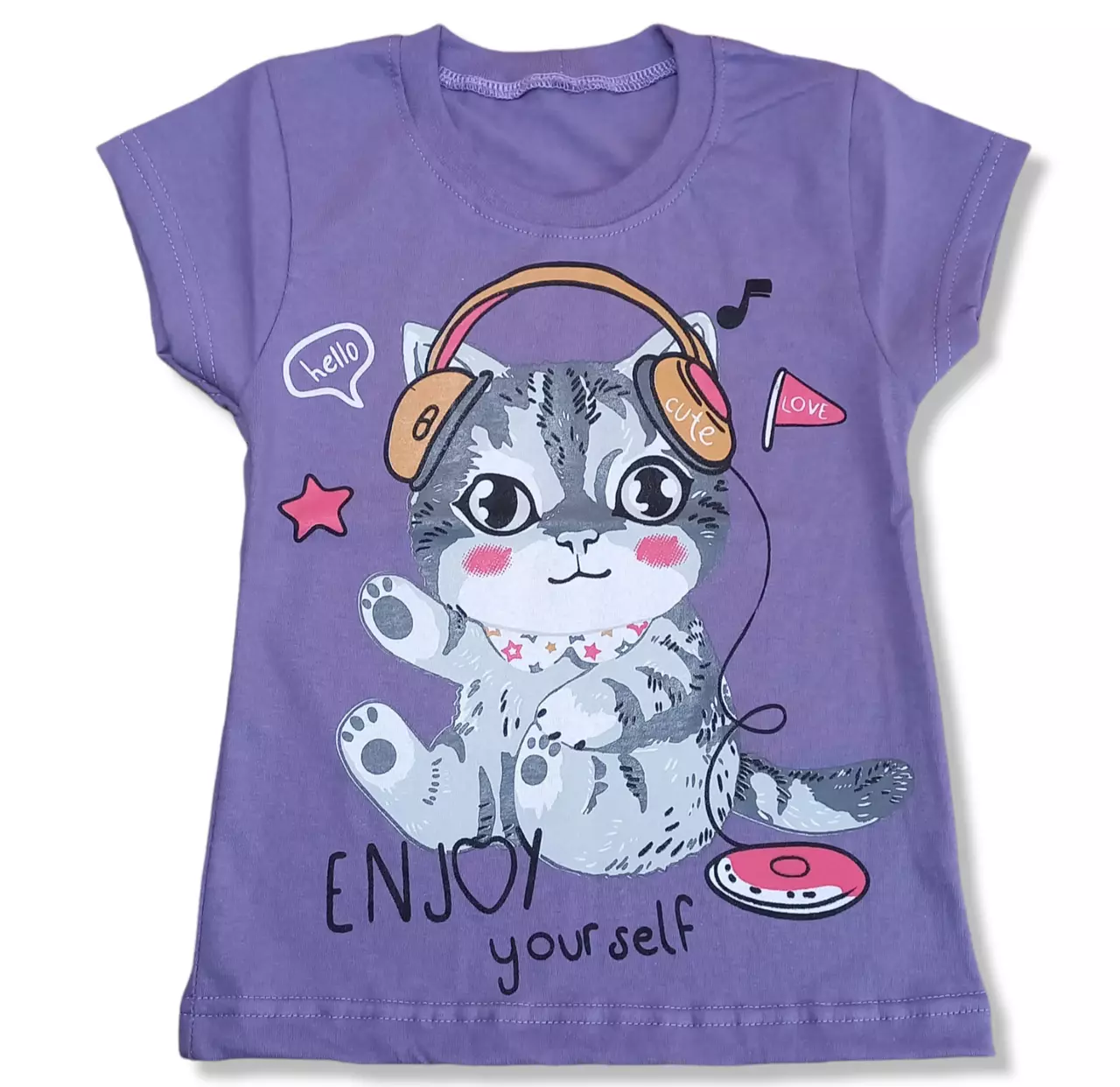 Футболка для девочки с принтом Кошка кулир (состав): 100% хлопок.
