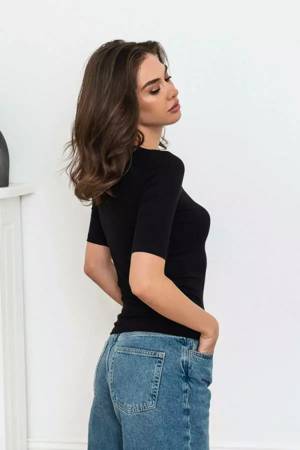 Футболка з віскозного рубчика. Лаконічний крій та нейтральний колір футболки дозволить легко вписати у ваш базовий гардероб