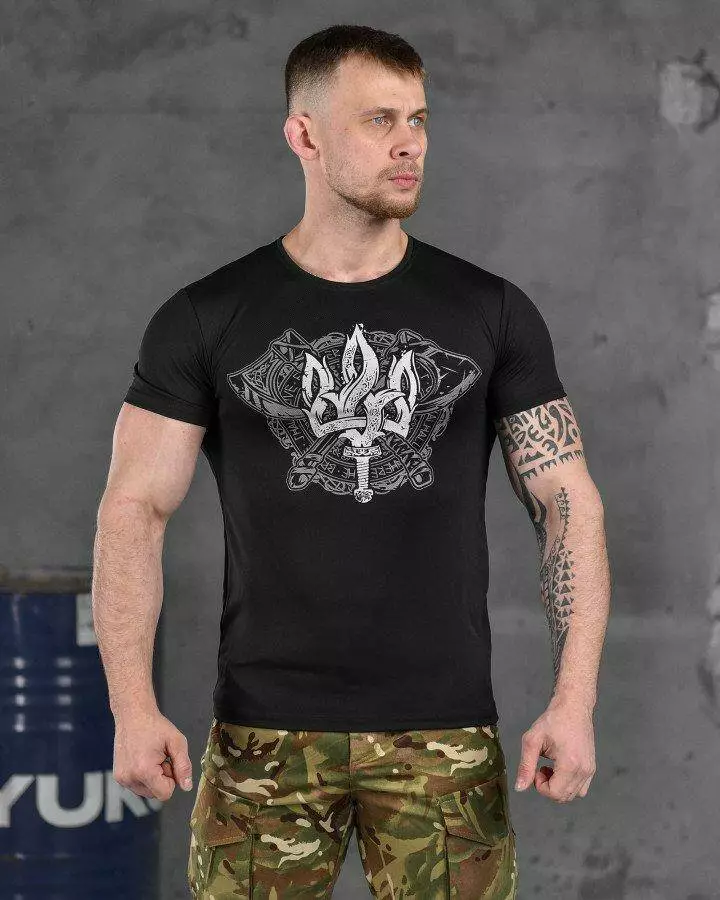 Футболка потовідвідна з принтом Coolmax чорна