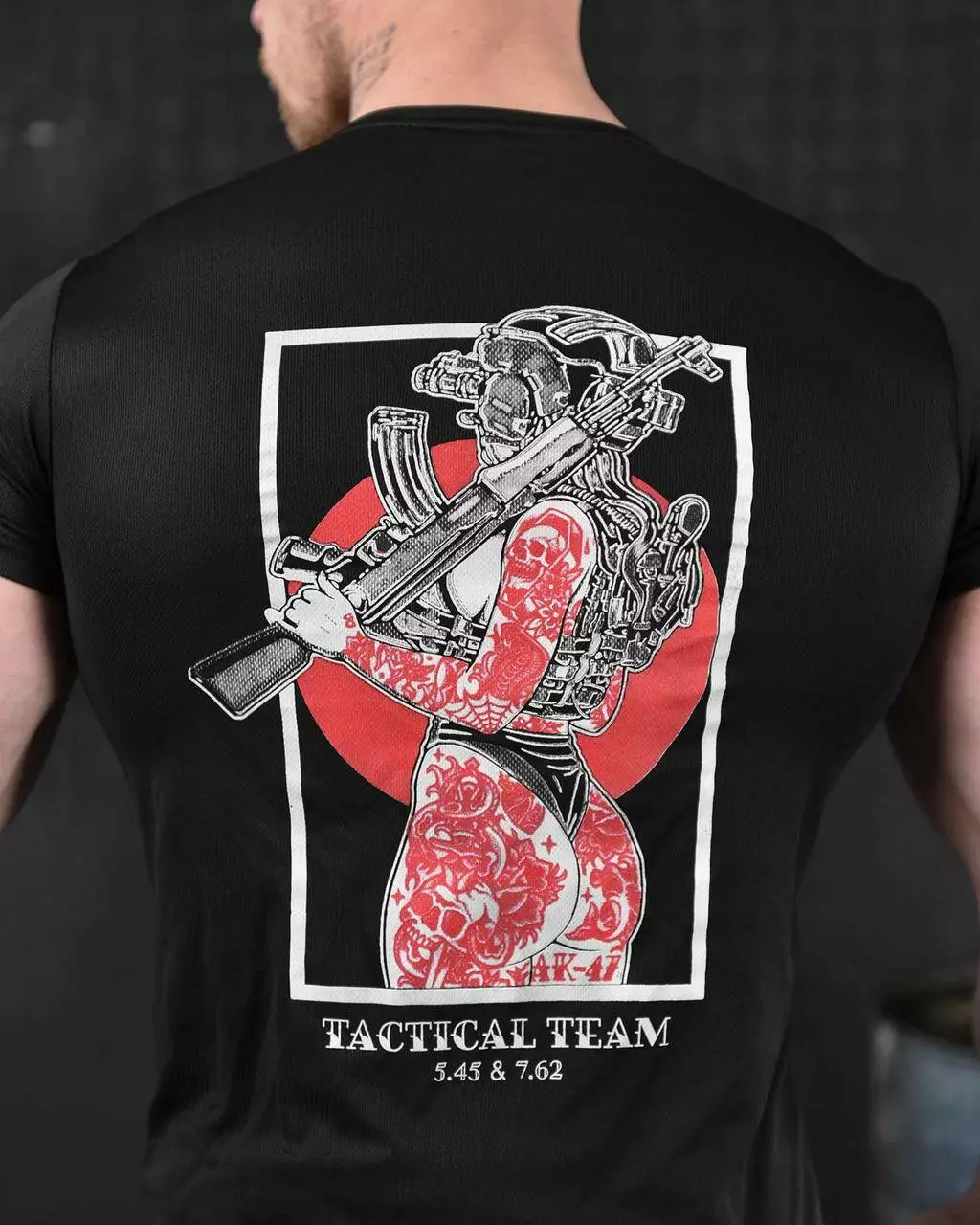 Футболка з класичним круглим вирізом, коротким рукавом та високоякісним принтом.