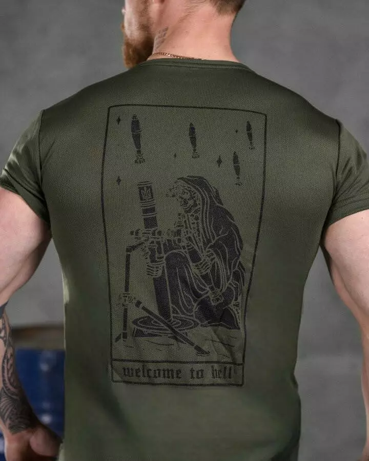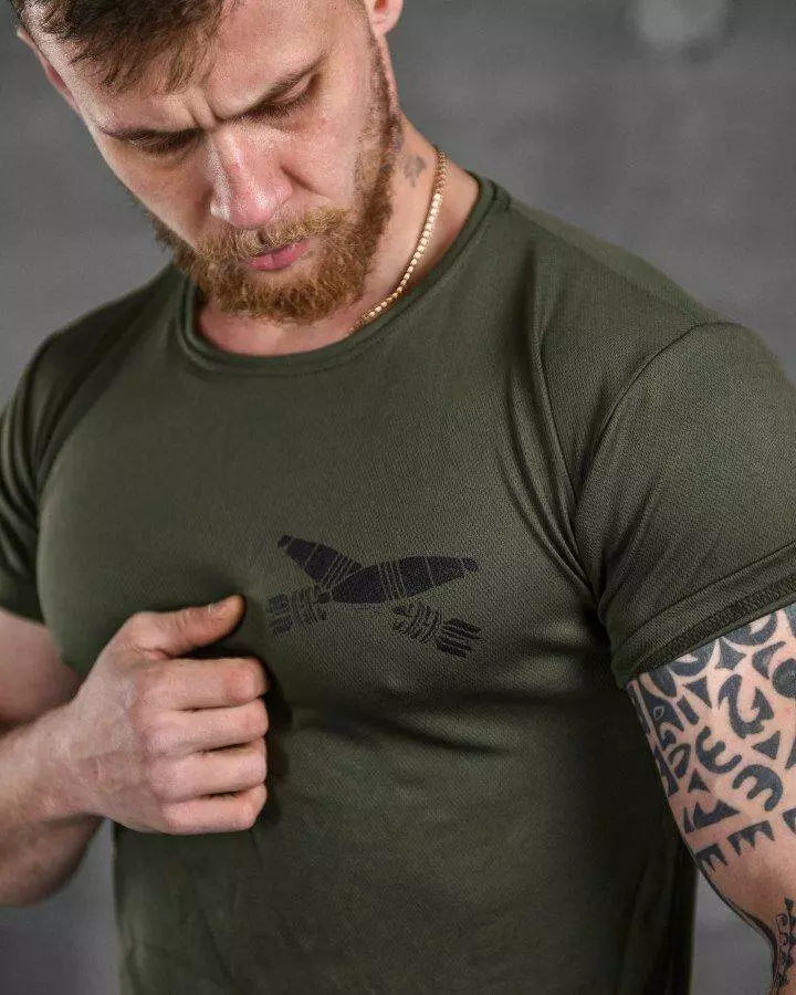 Футболка потовідвідна з принтом Coolmax олива