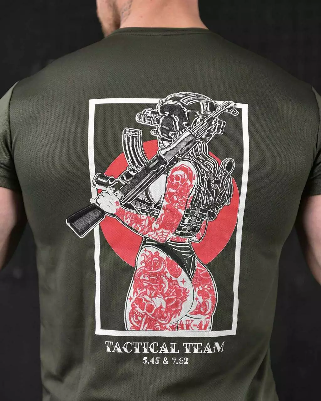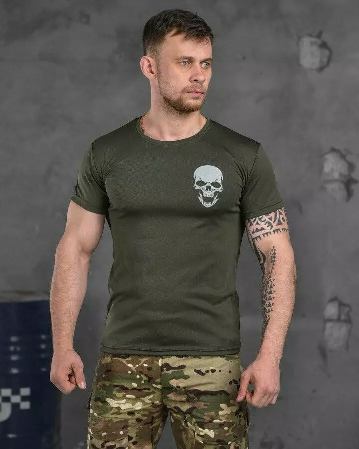 Футболка потовідвідна з принтом Coolmax олива