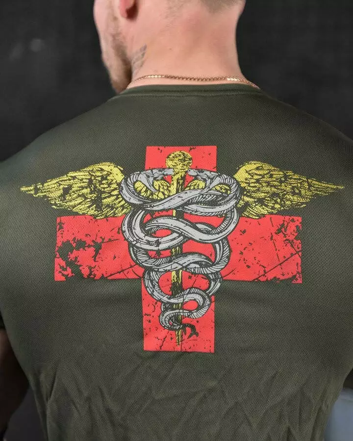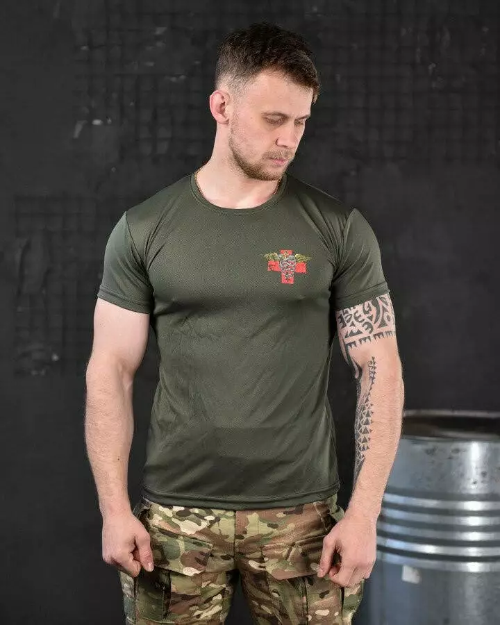 Футболка потовідвідна з принтом Coolmax олива