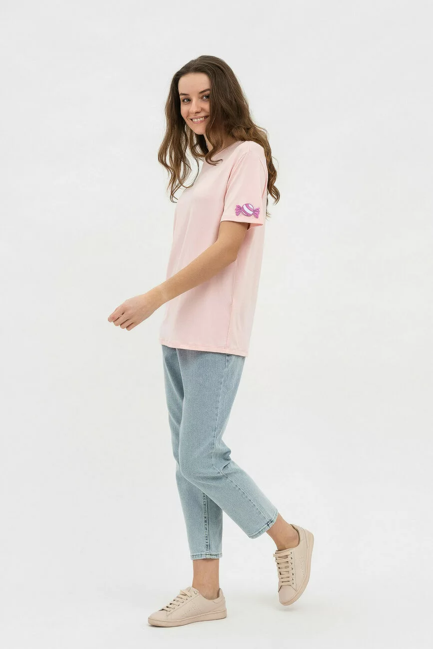 Це проста трикотажна футболка ніжного рожевого відтінку, і для неї