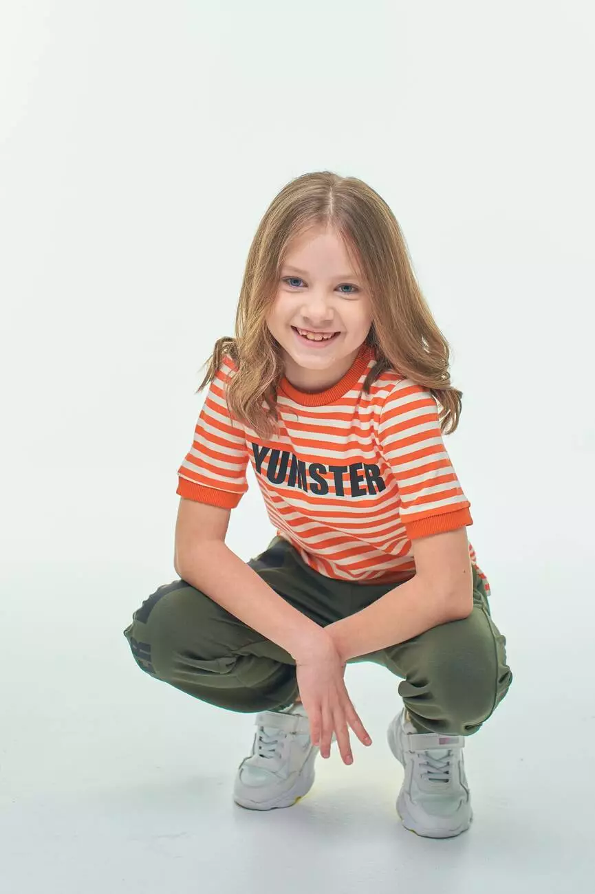 Яскрава дитяча футболка в смужку. Розмірний ряд: на зріст від