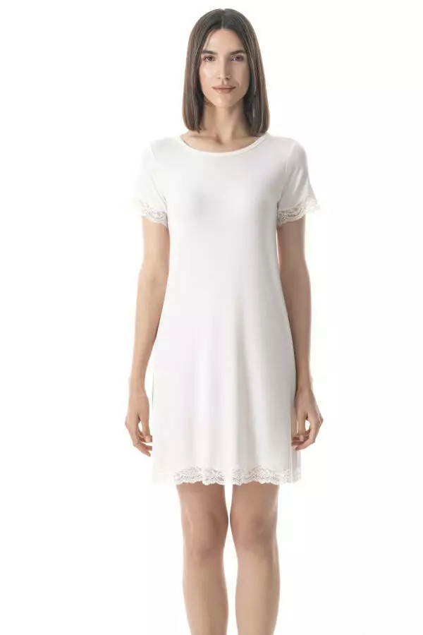 Футболка-сорочка для сну модал з мереживом German Volf 24082 Молочний M 581184