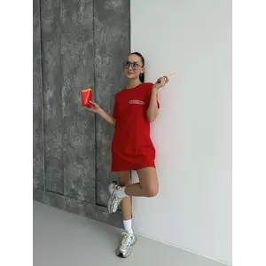 Ця футболка-туніка в ефектному червоному кольорі створена для тих, хто любить привертати увагу та випромінювати впевненість. Насичений відтінок додає енергії, а лаконічний життєстверджуючий напис на грудях заряджає позитивом і нагадує: будь щасливою кожен день!